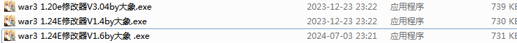 解壓后會有3個文件,1.20e的是對應的游戲版本1.20e,1.24E對應的是游戲版本1.24E,1.24E的1.4與1.6都可以用,1.6是最新的版本。