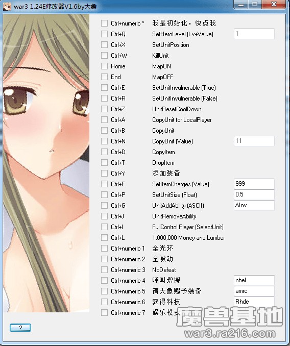 2、修改器上點擊初始化,建圖開玩。(重新建圖不需要再次初始化)