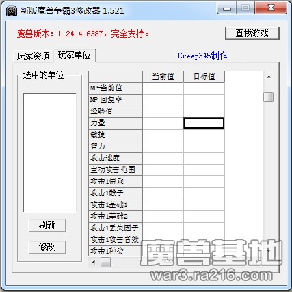 本修改器支持1.20以上版本的魔獸,包括最新的1.26,如果魔獸更新,你可以自己更新基址即可支持,具體請看附錄1。