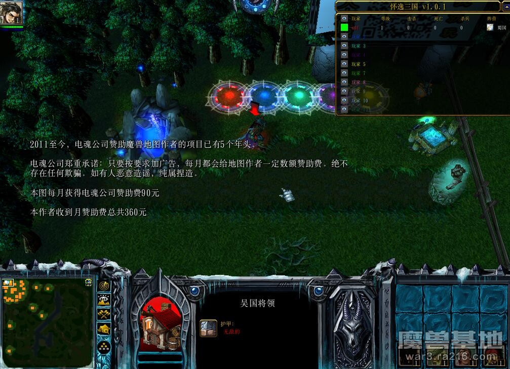 魔獸地圖懷逸三國是一張對抗類型的地圖,本圖是真三DOTA類對抗游戲,5V5真人操作,體驗三國般的屠戮。分為力量 敏捷 智力三類英雄(陣容要分配合理)該圖具有很強的平衡性,法師、射手、輔助、戰士、肉盾英雄陣營分為魏、蜀、吳其他,感興趣的玩家趕快進入地圖體驗吧!